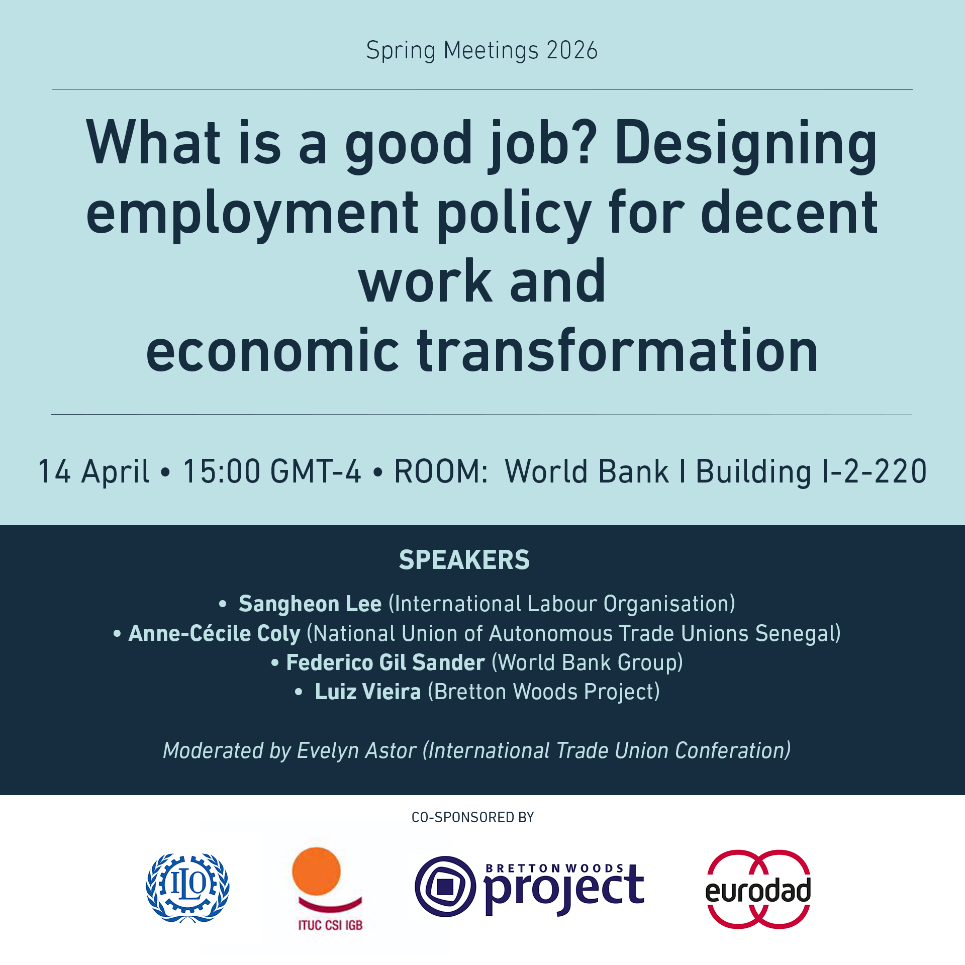 This event is co-sponsorsed by ITUC, ILO, Bretton Woods Project, Eurodad